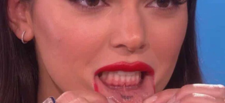 Во время одной из вечеринок Кендалл так перебрала с алкоголем, что могла произнести лишь «Мяу», почему-то девушке это показалось смешным и она отправилась в салон, чтобы оставить память о своем состоянии. На внутренней стороне губ Дженнер набили три буквы — «Мяу».